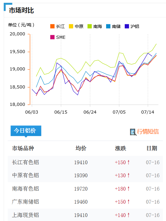 鋁錠價格7月16日今日鋁價